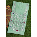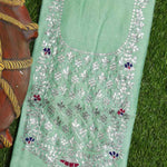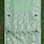 Pista Green Pittan Work Chanderi Silk Kurti Fabric
