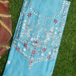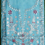 Sky Blue Pittan Work Chanderi Silk Kurti Fabric