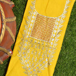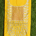 Yellow Pittan Work Chanderi Silk Kurti Fabric