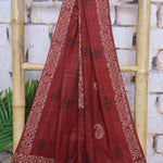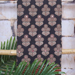 Ajrakh is usually found in Kutch (Gujarat) and Barmer (Rajasthan). Woodblock stamps are used to create different geometric patterns that are transferred onto the fabric using natural dyes, including vegetable and mineral dyes. The most common colours used include blue, red, black, yellow and green. One of the most common dyes used for this type of printing is indigo. Ajrak has been dated back to Mohenjo-daro, where the kings and royals have been shown wearing similar prints to those observed in ajrak patterns today. The beauty of ajrak is in its simplistic yet elegant patterns and natural texture. This is handblock print fabric with natural dyes so small differences in colour and irregularities in prints are normal and the beauty of the art.