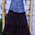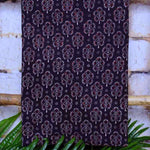 Ajrakh is usually found in Kutch (Gujarat) and Barmer (Rajasthan). Woodblock stamps are used to create different geometric patterns that are transferred onto the fabric using natural dyes, including vegetable and mineral dyes. The most common colours used include blue, red, black, yellow and green. One of the most common dyes used for this type of printing is indigo. Ajrak has been dated back to Mohenjo-daro, where the kings and royals have been shown wearing similar prints to those observed in ajrak patterns today. The beauty of ajrak is in its simplistic yet elegant patterns and natural texture. This is handblock print fabric with natural dyes so small differences in colour and irregularities in prints are normal and the beauty of the art.