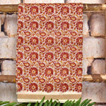 Maheshwar in Madhya Pradesh, India is known for its exquisite and woven Maheshwari fabrics. This uses zari with floral borders on the body of the cloth in a range of mild to bright colours. The most distinctive features of maheshwari fabrics are the light weight and shiny lustre.