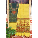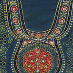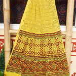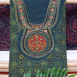 Ajrakh is usually found in Kutch (Gujarat) and Barmer (Rajasthan). Woodblock stamps are used to create different geometric patterns that are transferred onto the fabric using natural dyes, including vegetable and mineral dyes. The most common colours used include blue, red, black, yellow and green. One of the most common dyes used for this type of printing is indigo. Ajrak has been dated back to Mohenjo-daro, where the kings and royals have been shown wearing similar prints to those observed in ajrak patterns today. The beauty of ajrak is in its simplistic yet elegant patterns and natural texture. This is handblock print fabric with natural dyes so small differences in colour and irregularities in prints are normal and the beauty of the art.