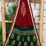 Batik originating from Gujarat, embellished with gold blocks or hand embroideries.