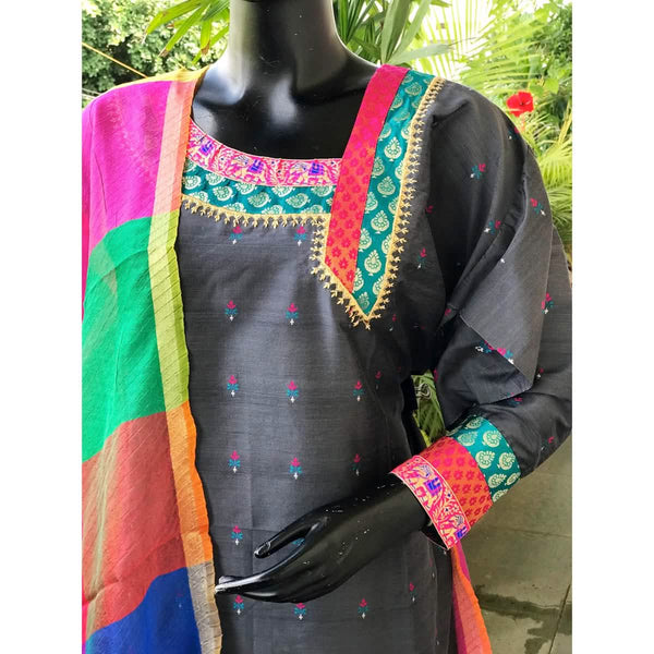 Wash Instructions: Handicraft fabrics tend to bleed during the initial washes. Please do not soak them in water or dry under direct sunlight for long lasting colours. First wash dry cleaning is recommended.