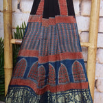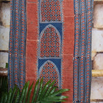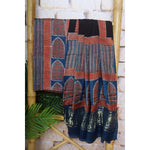 Ajrakh is usually found in Kutch (Gujarat) and Barmer (Rajasthan). Woodblock stamps are used to create different geometric patterns that are transferred onto the fabric using natural dyes, including vegetable and mineral dyes. The most common colours used include blue, red, black, yellow and green. One of the most common dyes used for this type of printing is indigo. Ajrak has been dated back to Mohenjo-daro, where the kings and royals have been shown wearing similar prints to those observed in ajrak patterns today. The beauty of ajrak is in its simplistic yet elegant patterns and natural texture. This is handblock print fabric with natural dyes so small differences in colour and irregularities in prints are normal and the beauty of the art.
