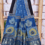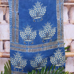 Ajrakh is usually found in Kutch (Gujarat) and Barmer (Rajasthan). Woodblock stamps are used to create different geometric patterns that are transferred onto the fabric using natural dyes, including vegetable and mineral dyes. The most common colours used include blue, red, black, yellow and green. One of the most common dyes used for this type of printing is indigo. Ajrak has been dated back to Mohenjo-daro, where the kings and royals have been shown wearing similar prints to those observed in ajrak patterns today. The beauty of ajrak is in its simplistic yet elegant patterns and natural texture. This is handblock print fabric with natural dyes so small differences in colour and irregularities in prints are normal and the beauty of the art.