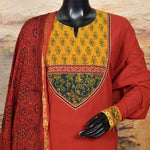 Ajrakh is usually found in Kutch (Gujarat) and Barmer (Rajasthan). Woodblock stamps are used to create different geometric patterns that are transferred onto the fabric using natural dyes, including vegetable and mineral dyes. The most common colours used include blue, red, black, yellow and green. One of the most common dyes used for this type of printing is indigo. Ajrak has been dated back to Mohenjo-daro, where the kings and royals have been shown wearing similar prints to those observed in ajrak patterns today. The beauty of ajrak is in its simplistic yet elegant patterns and natural texture. This is handblock print fabric with natural dyes so small differences in colour and irregularities in prints are normal and the beauty of the art.