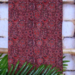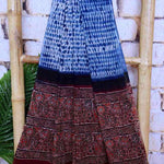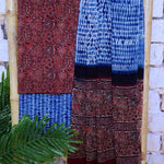 Ajrakh is usually found in Kutch (Gujarat) and Barmer (Rajasthan). Woodblock stamps are used to create different geometric patterns that are transferred onto the fabric using natural dyes, including vegetable and mineral dyes. The most common colours used include blue, red, black, yellow and green. One of the most common dyes used for this type of printing is indigo. Ajrak has been dated back to Mohenjo-daro, where the kings and royals have been shown wearing similar prints to those observed in ajrak patterns today. The beauty of ajrak is in its simplistic yet elegant patterns and natural texture. This is handblock print fabric with natural dyes so small differences in colour and irregularities in prints are normal and the beauty of the art.
