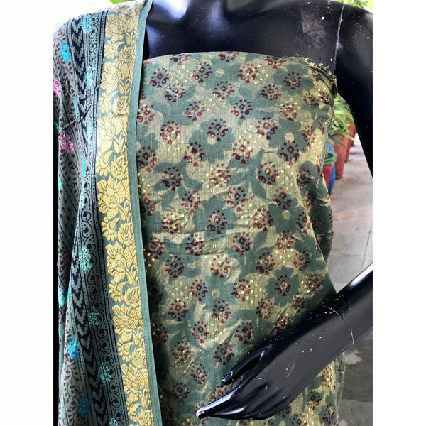 Moss Green Bagh Banarasi Cotton Zari Suit