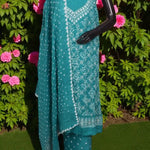 Teal Bandhani Cotton Designer Suit With Embroidery