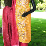 Yellow Bandhani Cotton Designer Suit With Embroidery