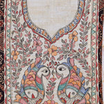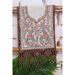 Black Ajrakh Kurti Fabric with Hand Painted Madhubani Yoke