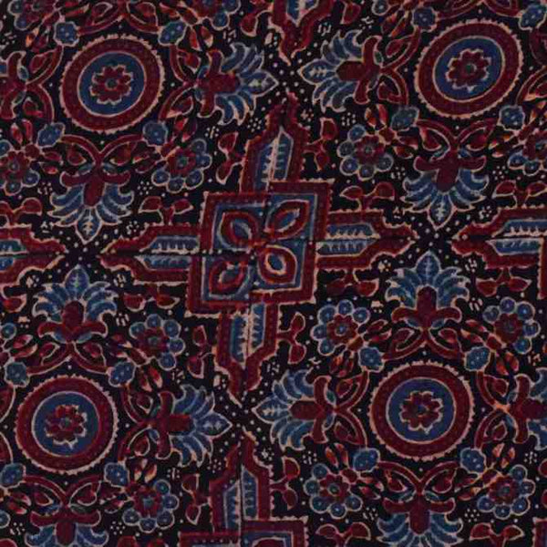Black Ajrakh Triple Block Rayon Fabric (0.60 CM Cut Piece)