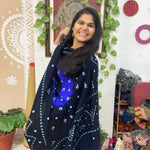 Black-Royal Blue Woollen Bandhani Shawl