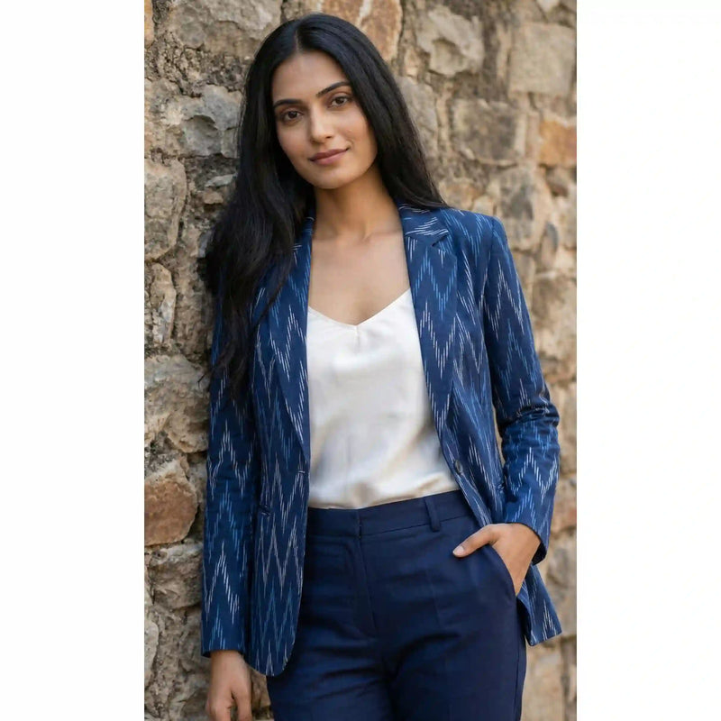 Blue Handloom Ikat Cotton Blazer