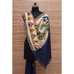 Blue-Handloom Ikat Dupatta with Pen Kalamkari
