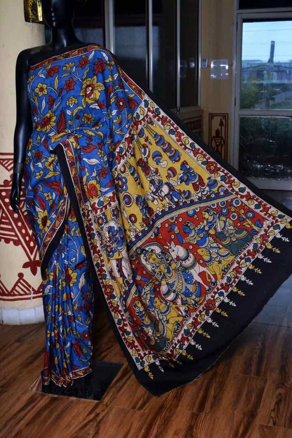 Blue Kalamkari HandPainted Chennuri Silk Saree