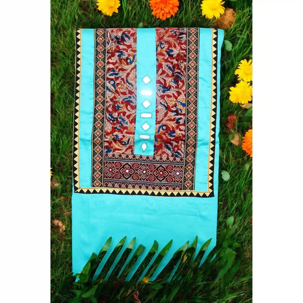 Blue Kalamkari Patchwork Glazed Cotton Kurti with Mirrors