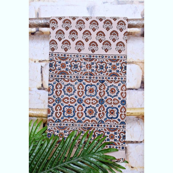 Cream Ajrakh Block Print Designer Kurti Fabric