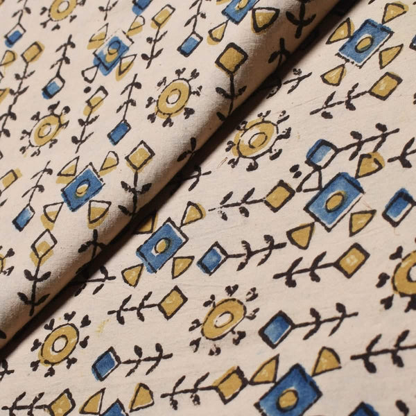 Cream Ajrakh Special Triple Block Cotton Fabric (Cut Piece 1.3 Meter)