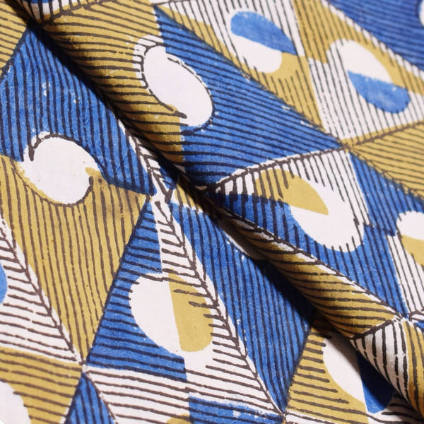 Cream Ajrakh Special Triple Block Cotton Fabric (Cut Piece 1.35 Meter)