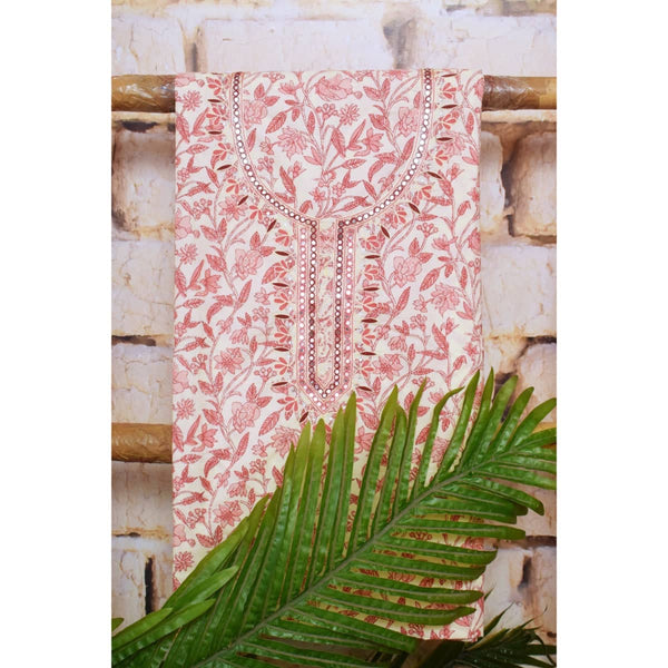 Cream Jaipuri Cotton Embroidered Kurti Fabric