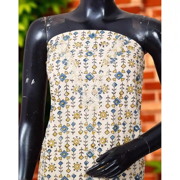 Cream Zardosi Ajrakh Cotton Embroidered Kurti