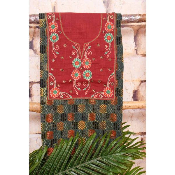 Green Ajrakh Block Print Hand Embroidered Kurti