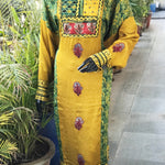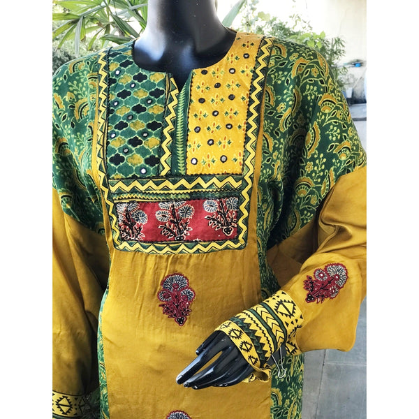 Green Ajrakh Modal Designer Kurti with Hand Embroidery