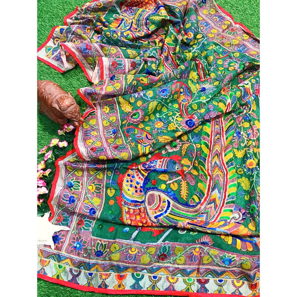 Green Chanderi Phulkari Hand Embroidered Dupatta