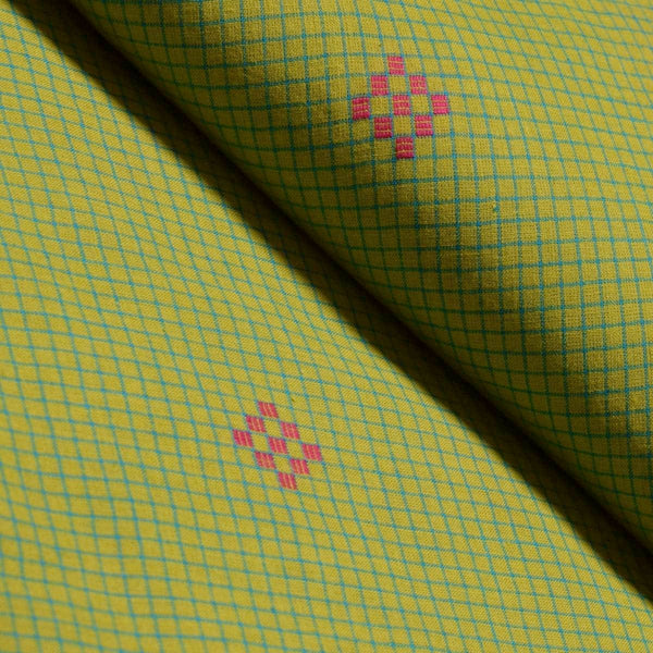 Green Checkered Cotton Woven Fabric (Cut Piece 2 Meter)