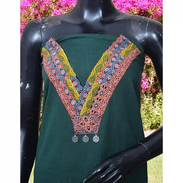Green Cotton Ajrakh Patchwork Kurti Fabric