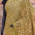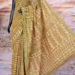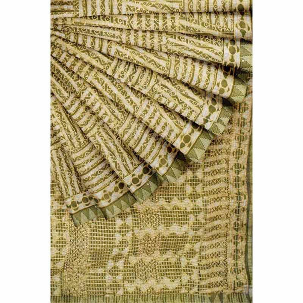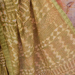 Green Dabu Slub Cotton Silk Saree with Gold Block