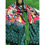 Green-Handloom Ikat Dupatta with Pen Kalamkari