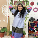 Grey Bhagalpuri Cotton Silk Colour Block Kurti
