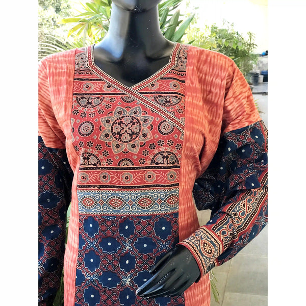 Indigo Ajrakh-Shibori Designer Cotton Patchwork Kurti