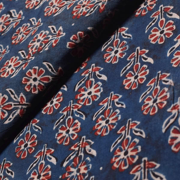 Indigo Ajrakh Special Triple Block Cotton Fabric (Cut Piece 1.1 Meter)