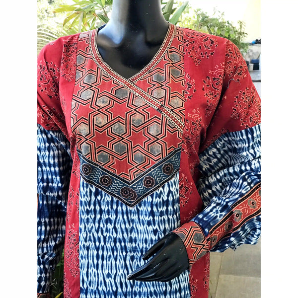 Madder Ajrakh-Shibori Designer Cotton Patchwork Kurti