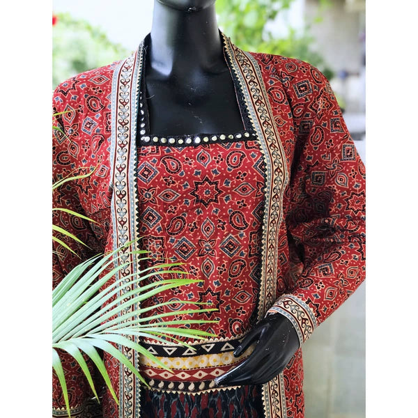 Madder Faux Jacket Ajrakh Cotton Designer Kurti