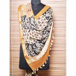 Mustard Kalamkari Slub Cotton Dupatta with Zari Border
