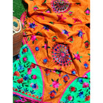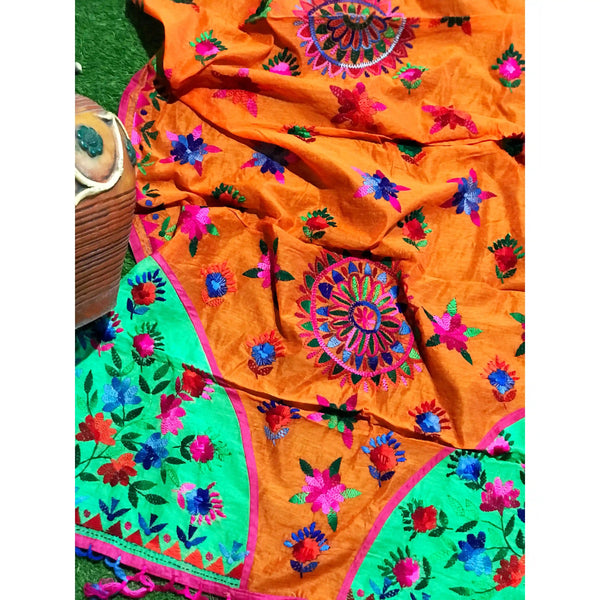 Orange Chanderi Phulkari Hand Embroidered Dupatta