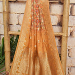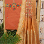 Orange Cotton SIlk Hand Embroidered Banarasi Dupatta Set