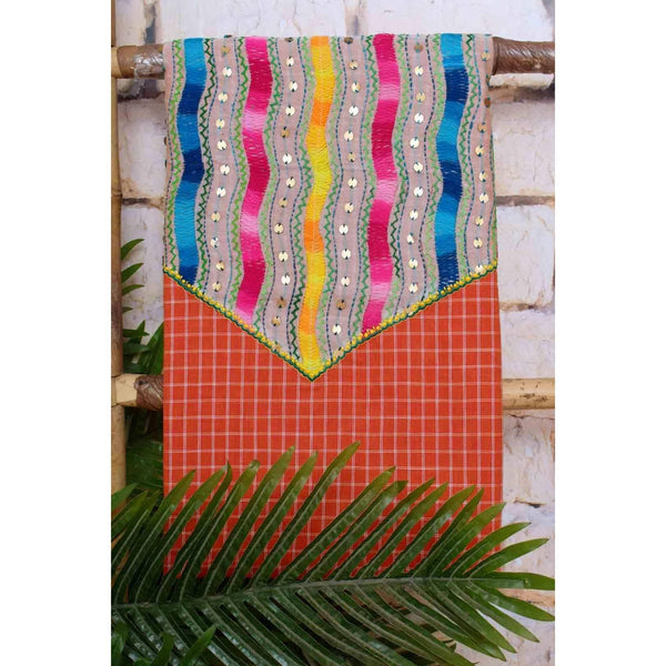 Orange Customised Phulkari Kurti Fabric