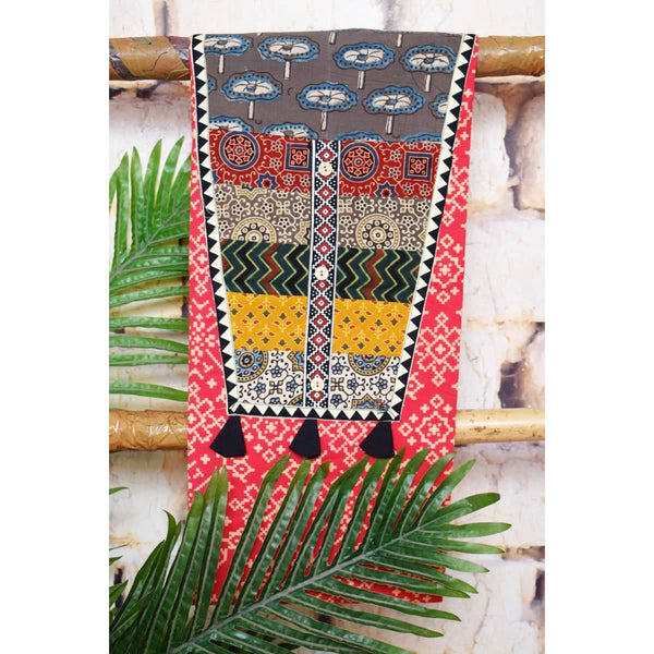 Orange Patola Inspired Cotton Patchwork Kurti