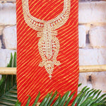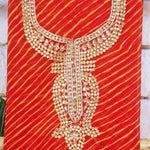 Peach Georgette Viscose Leheriya Kundan-Gota Kurti Fabric