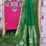 Pink Cotton SIlk Hand Embroidered Banarasi Dupatta Set