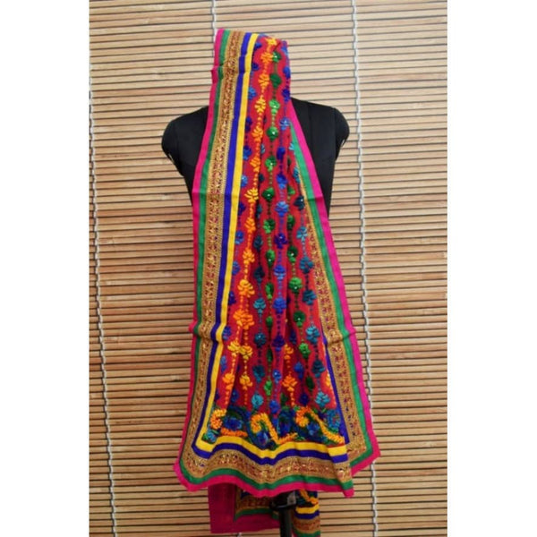 Pink Georgette Phulkari Hand Embroidered Dupatta