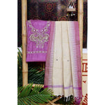 Purple Bhagalpuri Silk Suit with Hand Embroidery