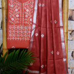 Red Linen Two Piece Embroidered Set